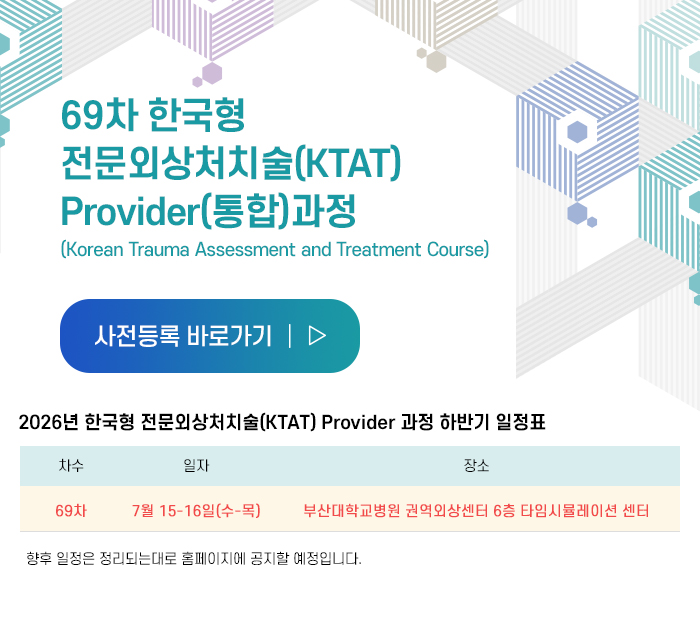 26.07.15-16: 69차 한국형 전문외상처치술(KTAT) Provider(통합)과정 등록 안내